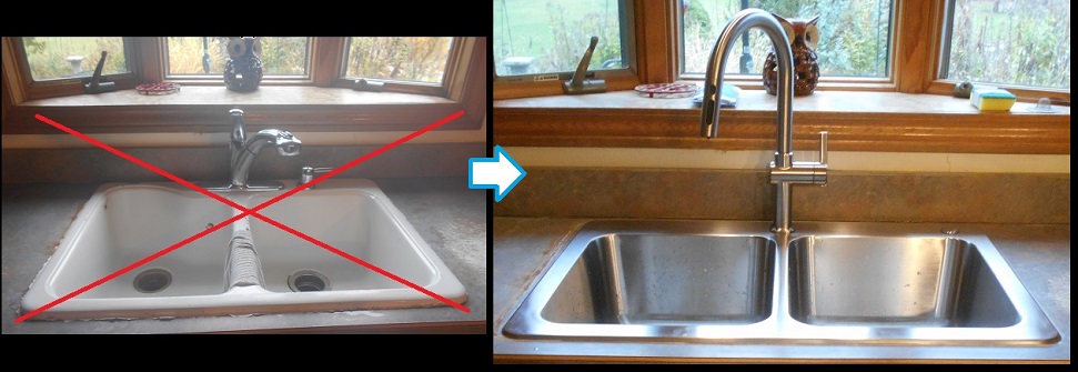 A new sink, faucet, and dishwasher installed for a new Attica customer.
