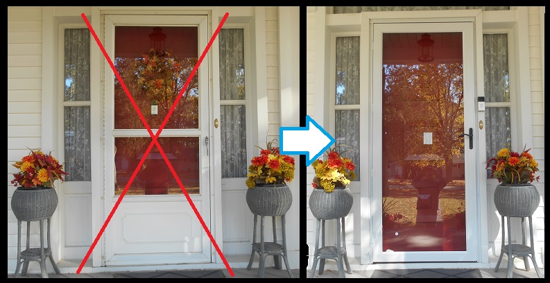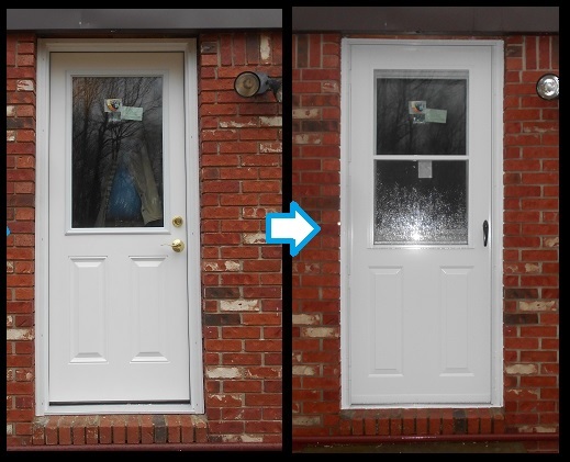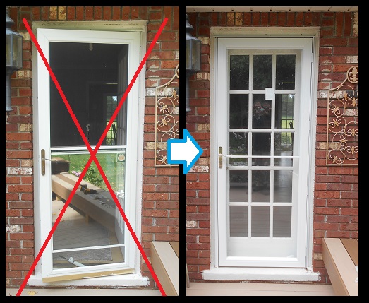 A storm door replaced for a repeat Almont customer in cooperation with R.C. Miller Builders.