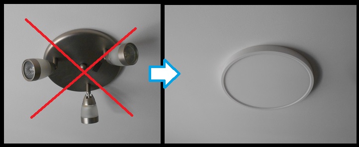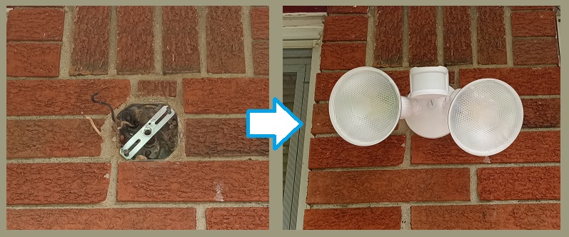 An old halogen light fixture replaced with an LED fixture for a new customer.